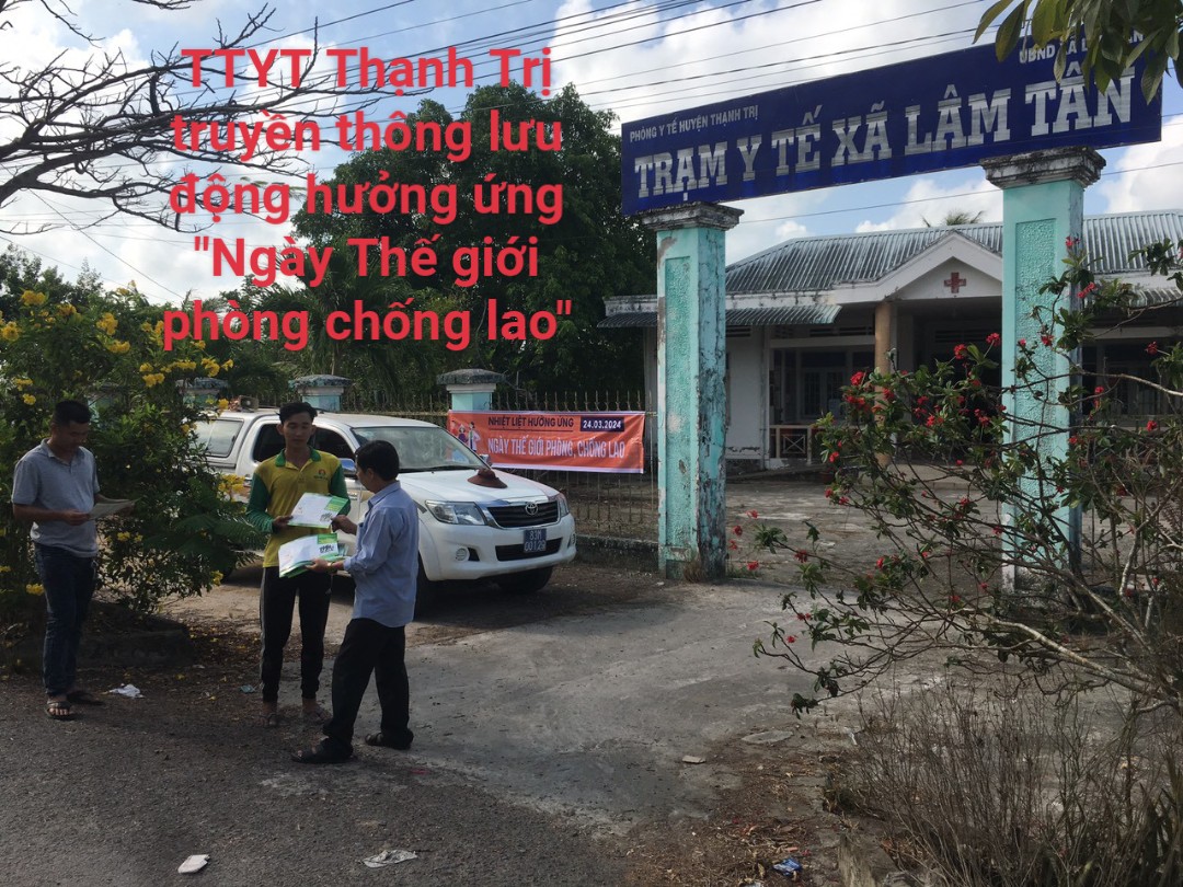 Ngày 23-24/3/2024 Trung tâm Y tế huyện Thạnh Trị tổ chức thực hiện truyền thông lưu động bằng xe ô tô về kiến thức bệnh lao tại khu đông dân cư của 10 xã, thị trấn trên địa bàn huyện. Đồng thời phối với Trạm Y tế cấp phát tờ rơi các thông tin về bệnh lao cho bệnh nhân đến khám bệnh tại Trạm Y tế các xã, thị trấn và người dân trên địa bàn.